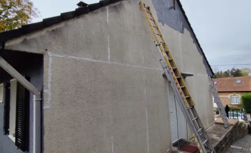 Sur une façade avec de légères fissures, la pose de deux couches de peinture spéciale étanchéité sur un garage de stockage permet de …