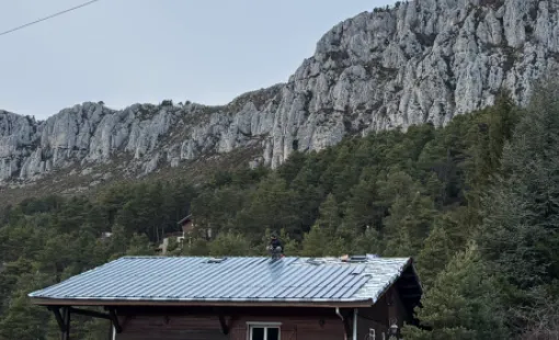 Mise en place d'un chantier pour une réfection de toiture et pose de bac acier, écran sous toiture et avec une vue magnifique sur la vallée à Andon…