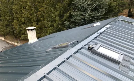 Pose de bac acier avec fenêtres de toit type Velux a Andon, kit d'étanchéité complet, gouttières…